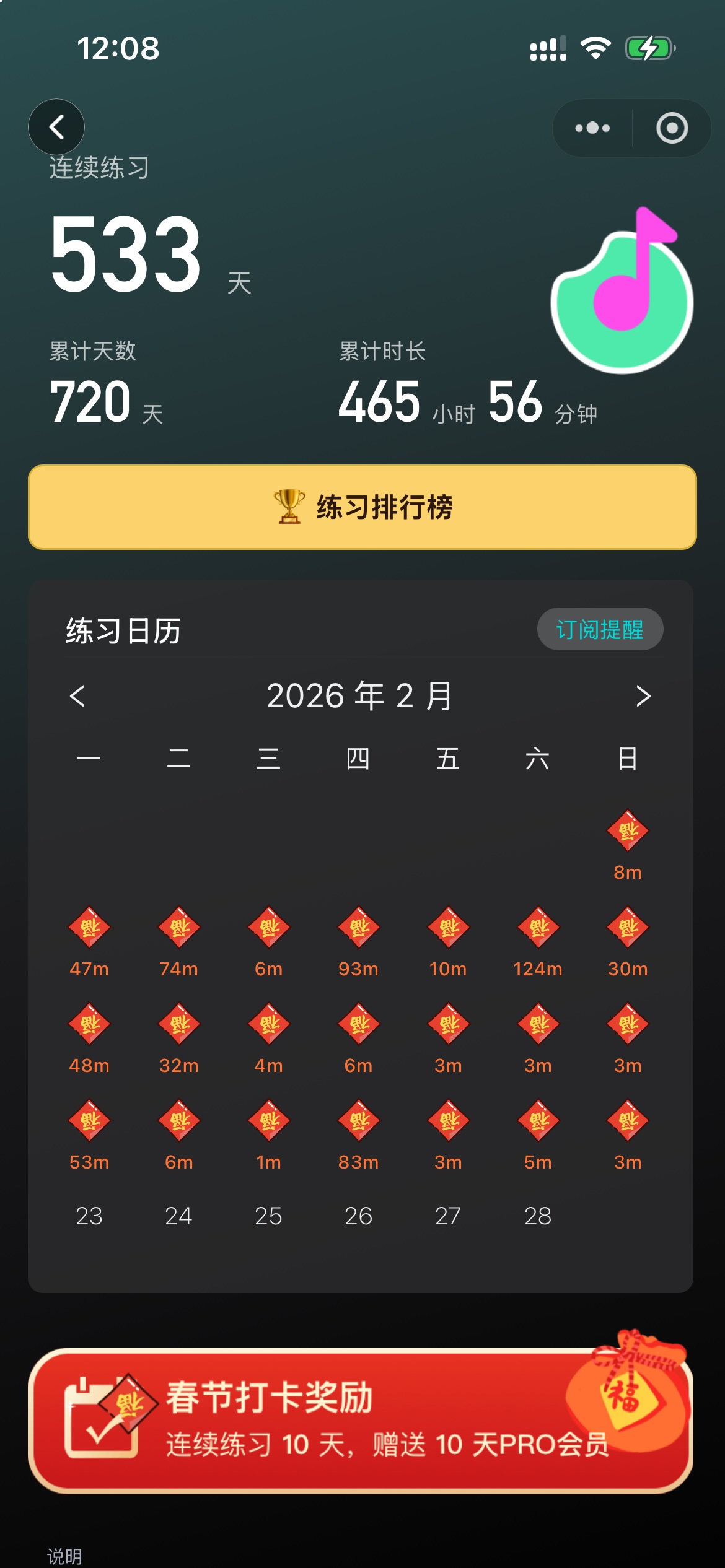 练习统计与复盘:时长、速度区间与连续打卡数据
